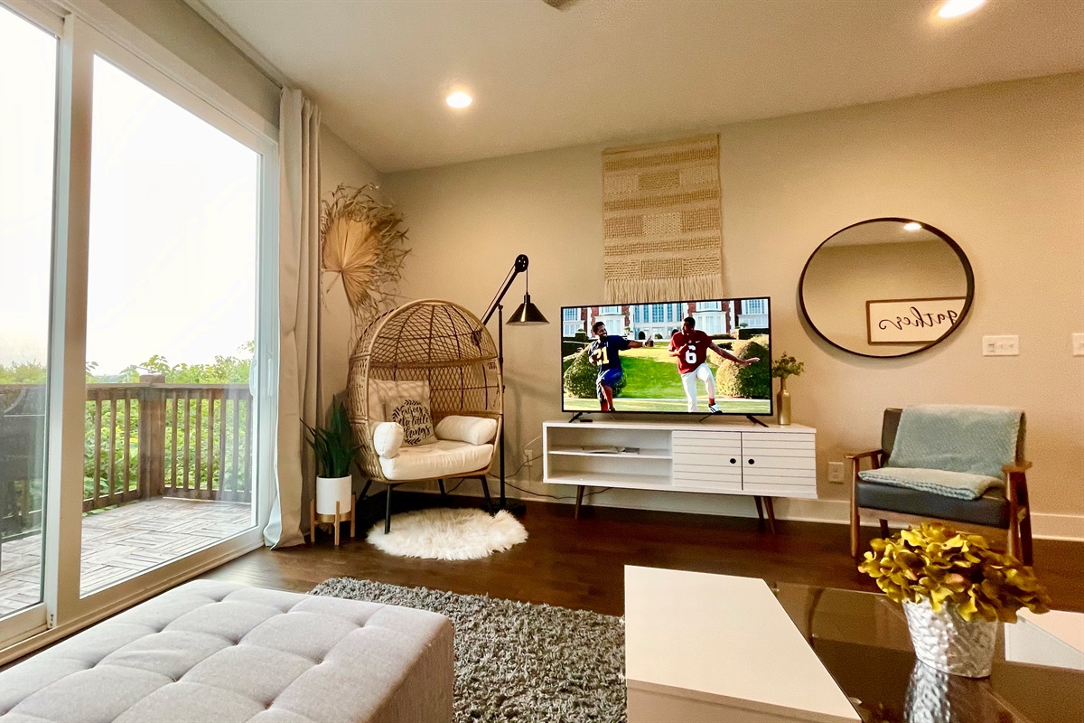 2 Bedrooms • 2 Bathrooms (1 full, 1 half) 2 Baths (1 full, 1 half) • Sleeps 1-73 miles to Infamous Broadway! This is a great space for a couple of families, 3 couples or 8 friends to travel and stay together with fantastic downtown views while you’re there. 2 Story Condo -2nd floor spacious Kitchen and living room for gathering have a queen sleeper sofa, 2 futon sleepers and 1/2 bath. 2 private bedrooms on first floor-one king, one w/full bed with twin on top. Large full bathroom with double vanity and shower/tub combo. Pet welcome $35 per night.