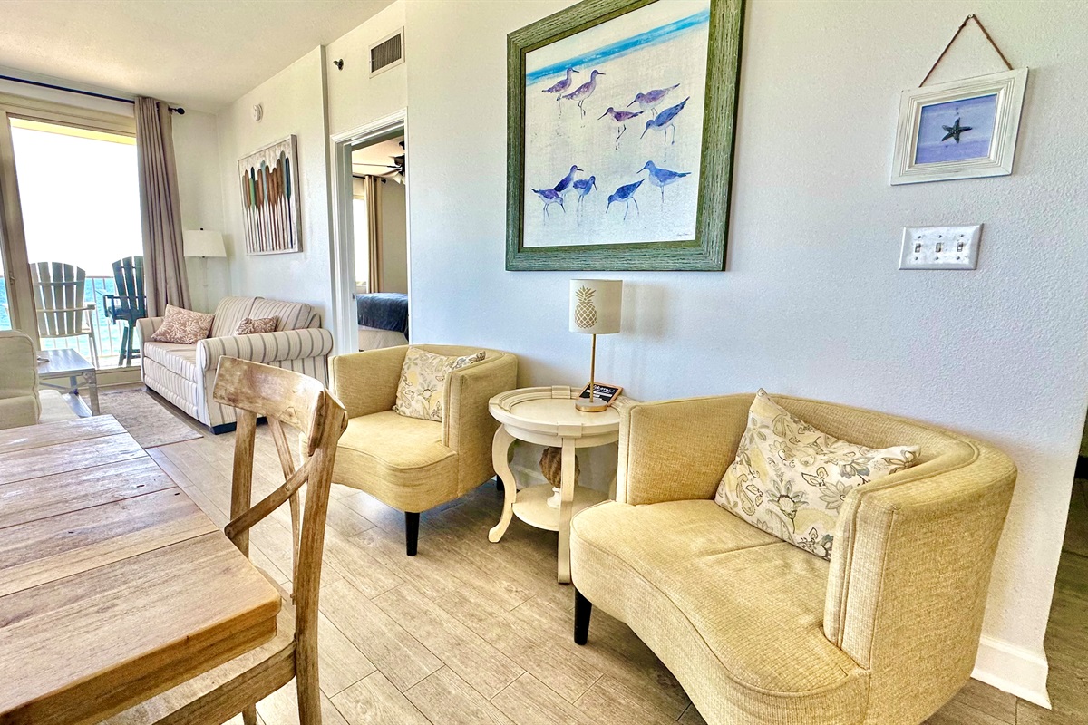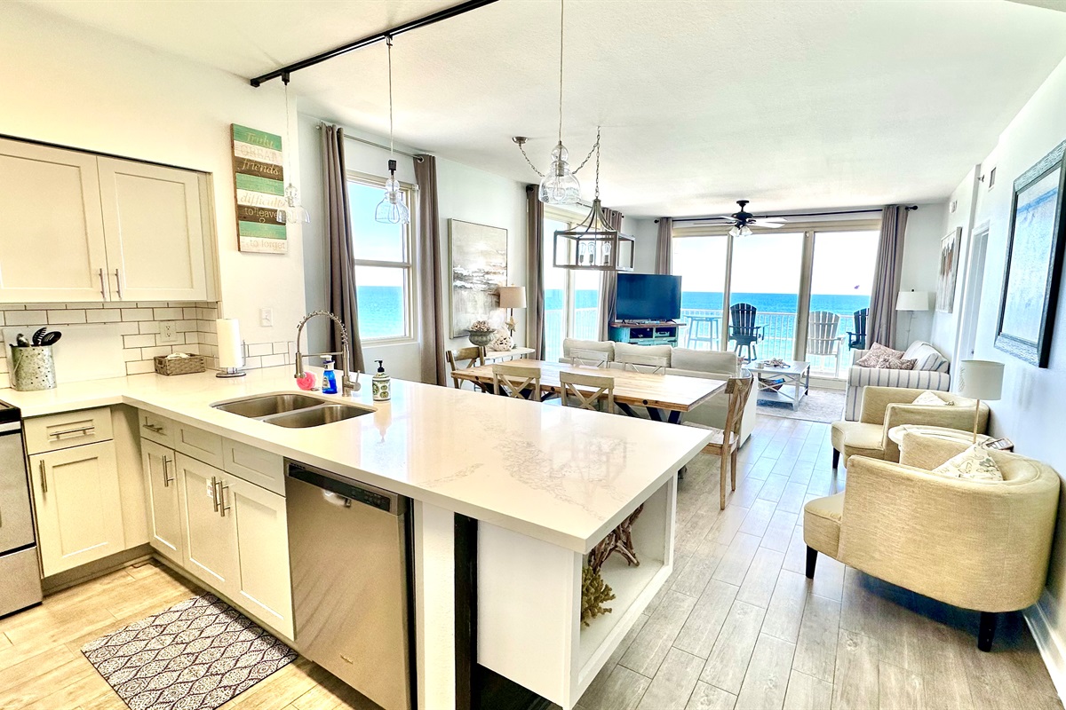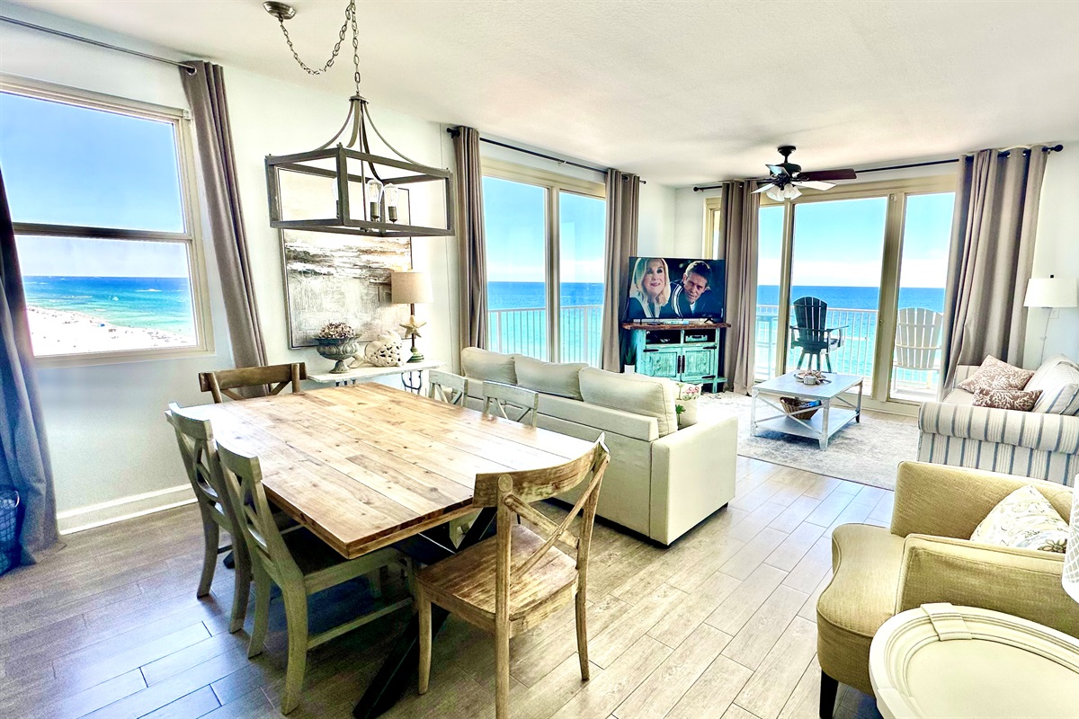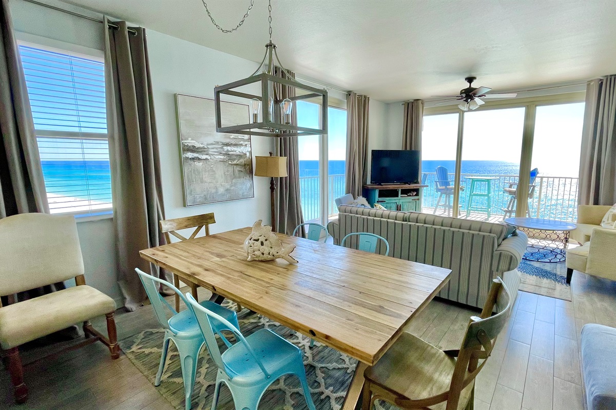 In the main living area there are 2 full walls of windows overlooking the ocean all the way to St. Andrews State Park.