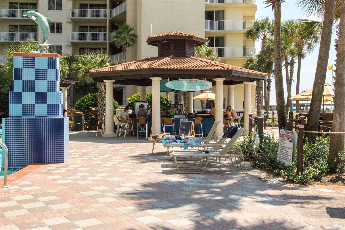 Outside you will find over 10,000 sq. ft. of pools, with lazy river, zero entry and water spouts. Outdoor tiki huts serving a full menu of food, drinks, ice cream and more! There is a live stage area for performers, (we love karaoke night), complete spa area and roman baths, sauna/steam/fitness areas, game room, kids club with activities daily and dive-in theatre (during peak seasons only), coffee shop and cafe, heated indoor pool and hot tub and much much more! This feels just like being at a resort!